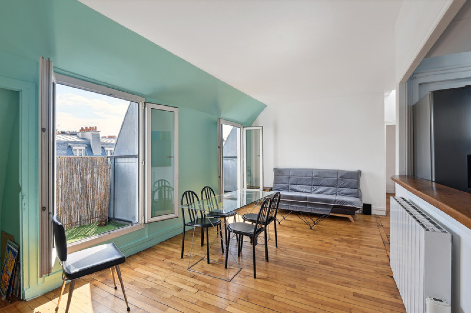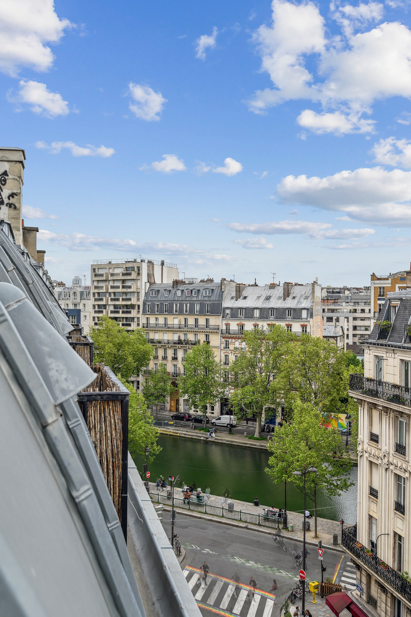 Grâce à sa localisation au 6ème et dernier étage, ses quatre balcons, et sa vue sur le ciel et sur le Canal Saint-Martin, cet appartement est un véritable cocon perché en plein coeur de Paris.
