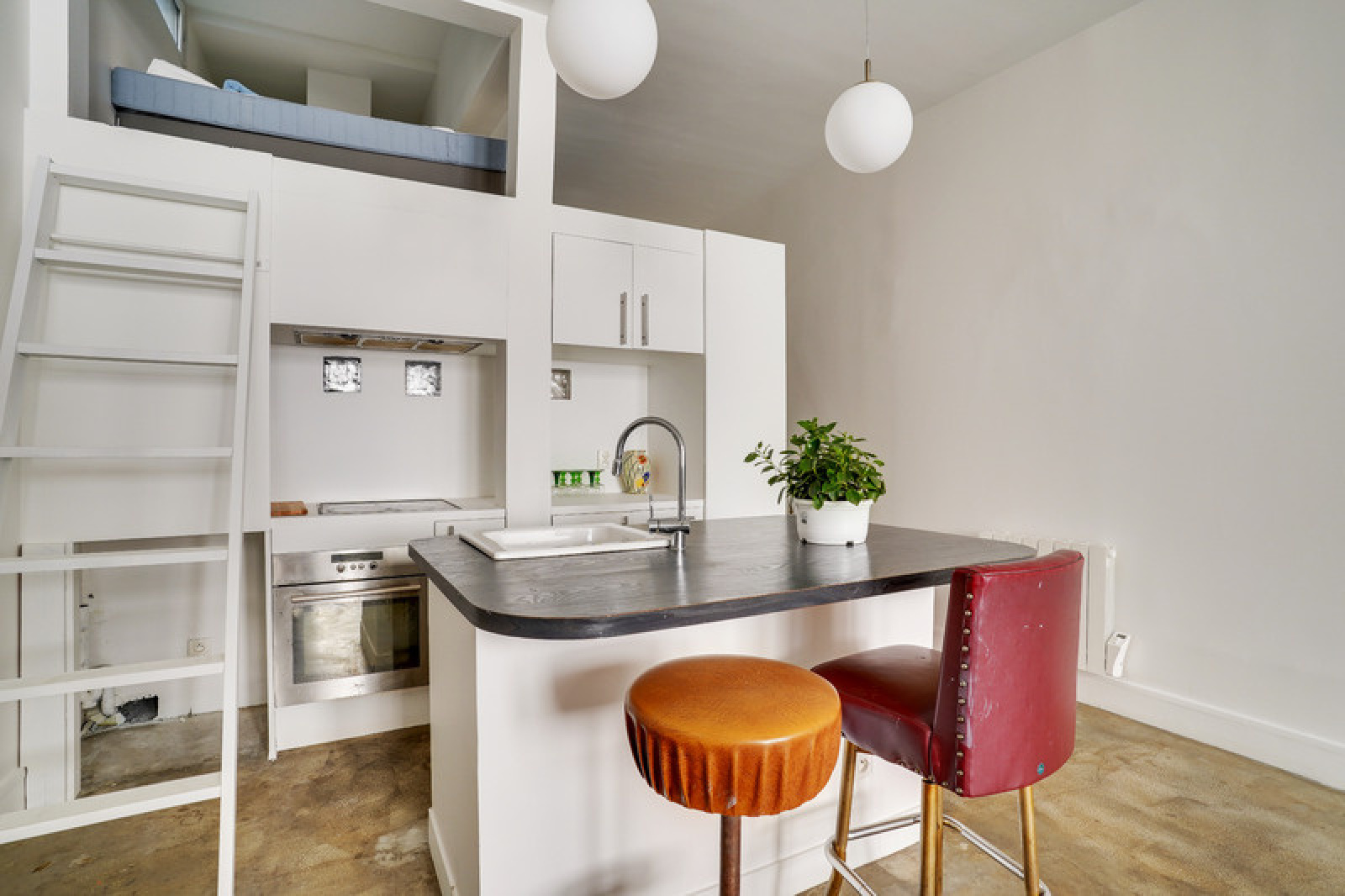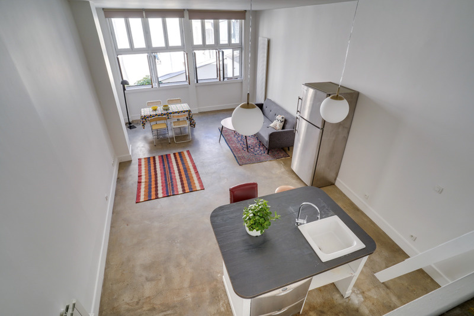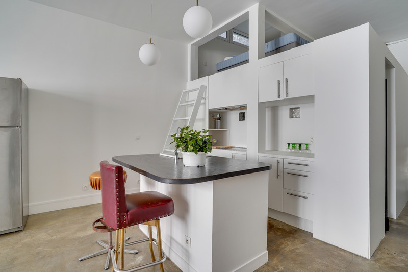 Authentique loft industriel de 47,10m² et sa mezzanne de 10,40m² à louer meublé.