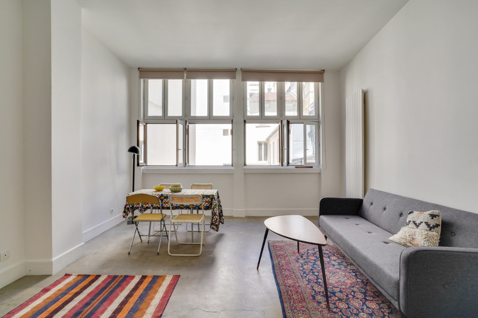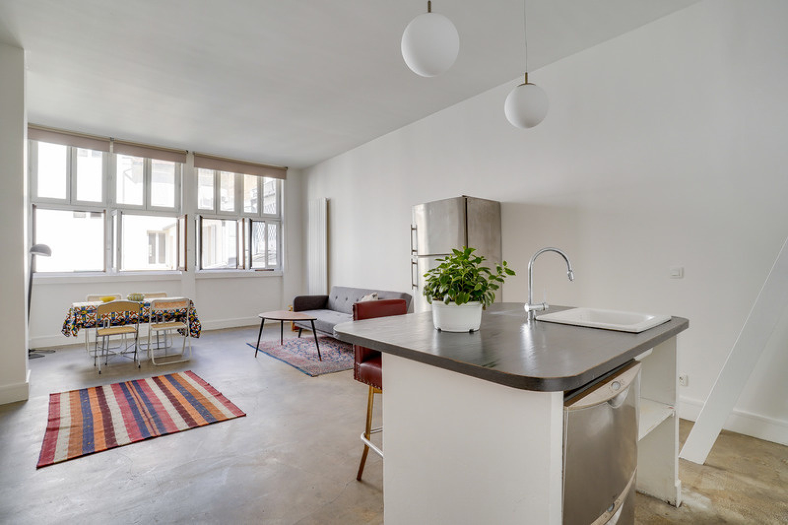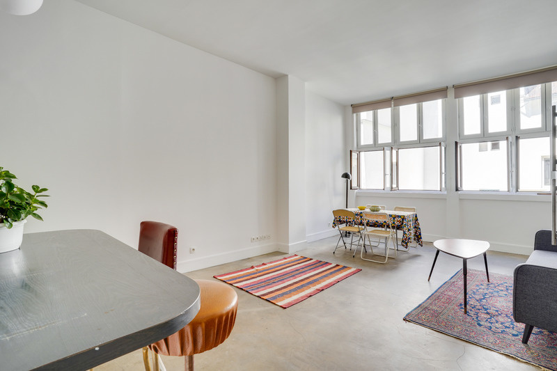 Il propose une vaste pièce de vie avec cuisine ouverte de 34,50 m², une salle d’eau et son wc, un dressing ainsi qu’une mezzanine permettant l'acceuil d'un couchage de 10,40m² (non comptée dans le mesurage). Il offre un très beau volume grâce à son bel espace de vie, sa hauteur sous plafond de 3,15 m et ses grandes fenêtres en double vitrage. Exposé plein Ouest sur cour, il est à la fois calme et lumineux. Un lit deux personnes est placé dans la mezzanine et un canapé convertible a également été installé. Idéalement situé dans un quartier vivant, à la fois proche des commodités et des transports en commun (Métros Strasbourg Saint-Denis, République… et grandes gares).Libre de suite.