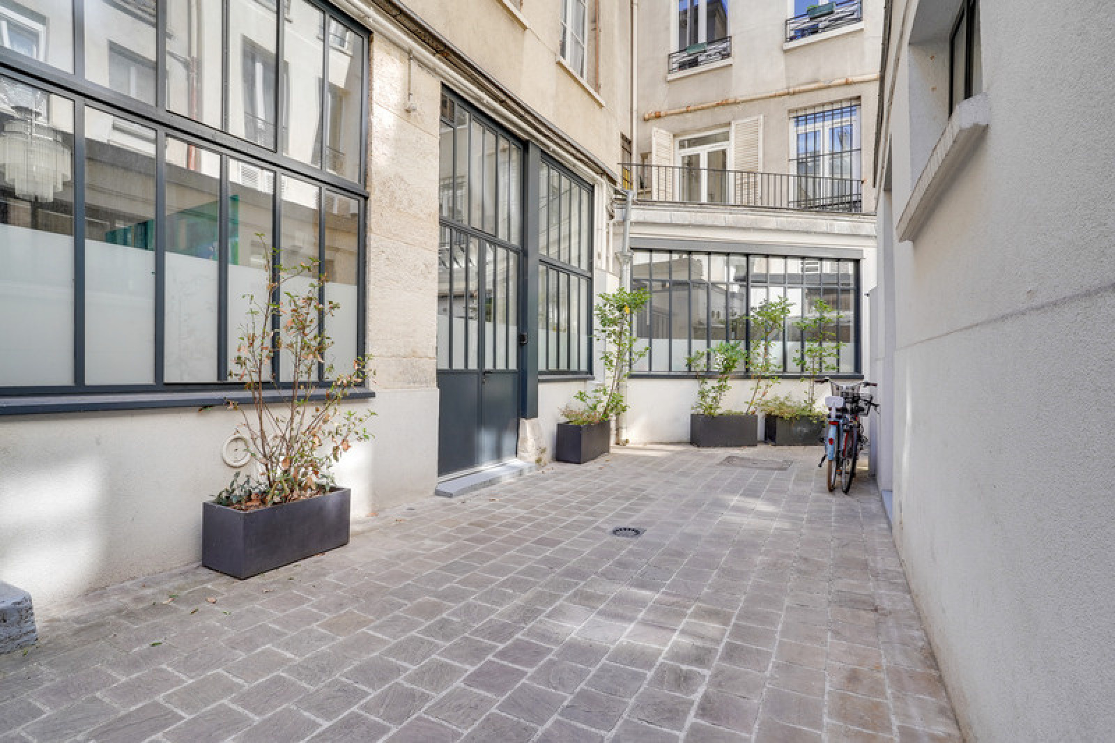 Situé sur une grande cour calme et exposé plein Ouest avec une vue dégagée cet espace saura vous charmer.
