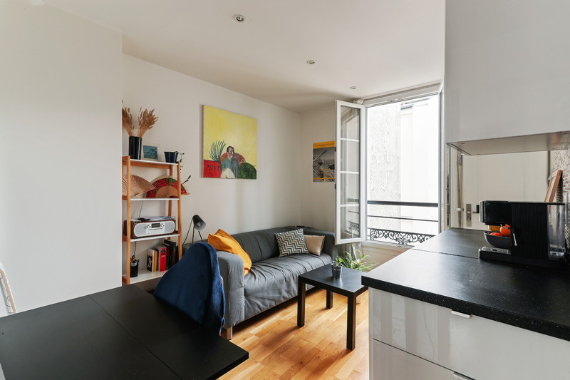 Son plan est très optimisé , le salon dispose d'une cuisine américiaine et d'une fenêtre exposée au calme sur cour dégagée, la chambre sur rue et son balcon disposent de nombreux rangements ( dressing ) , la cuisine est très bien équuée et la salle d'eau et son wc en état parfait. Calme, lumineux et décoré avec goût : c'est un coup de coeur.