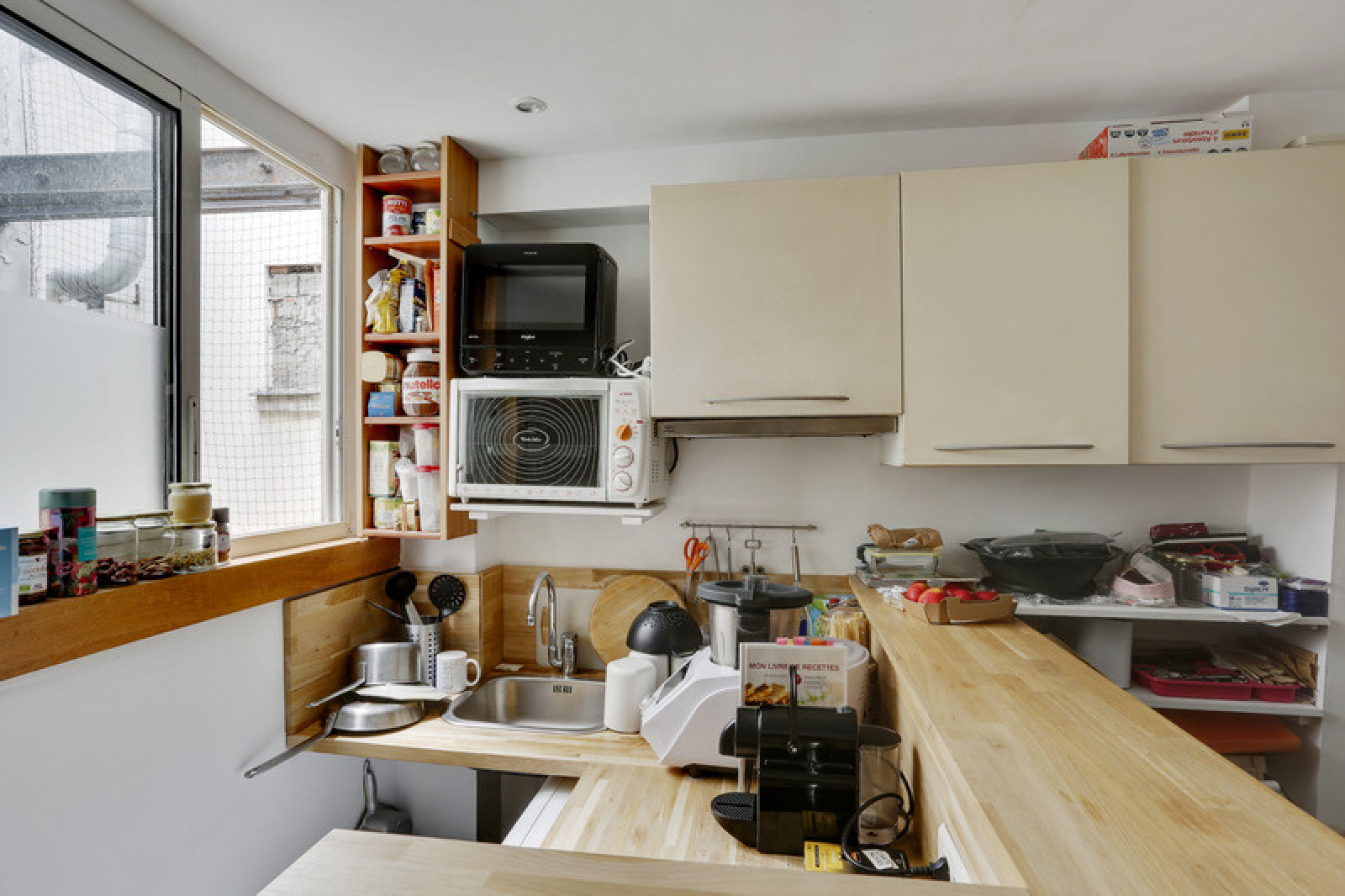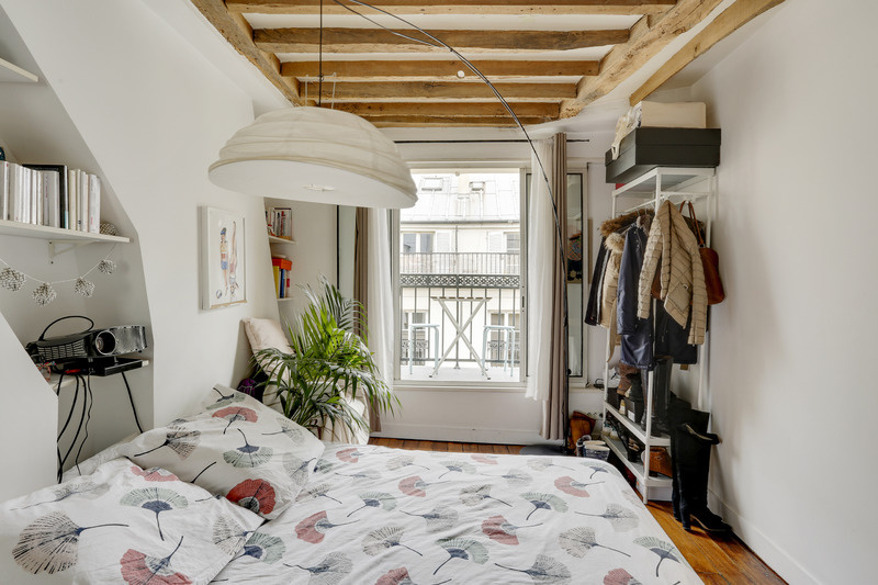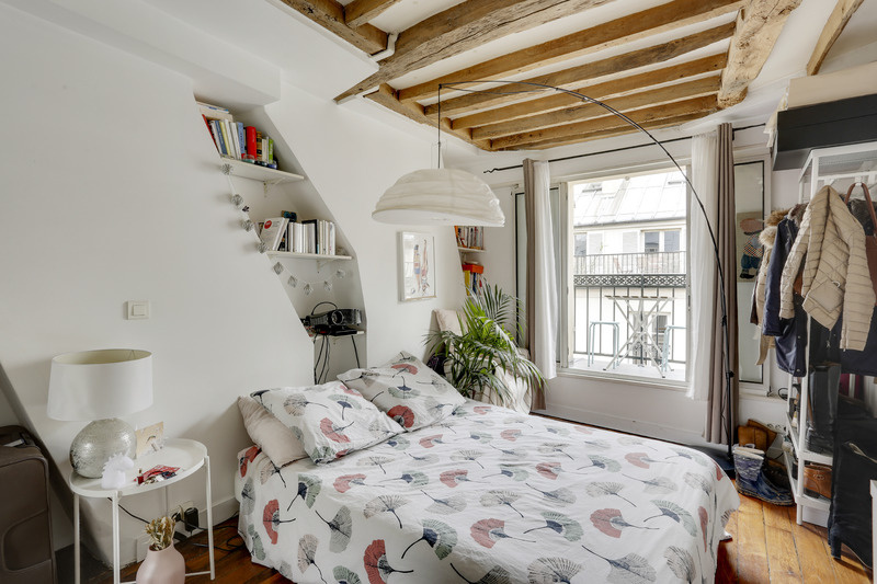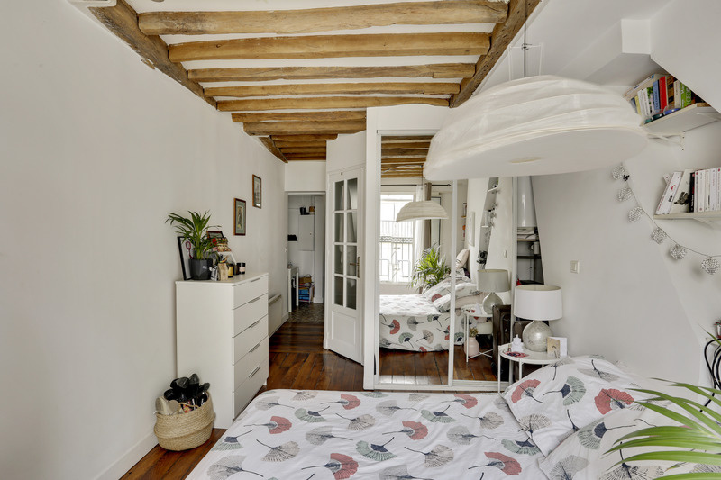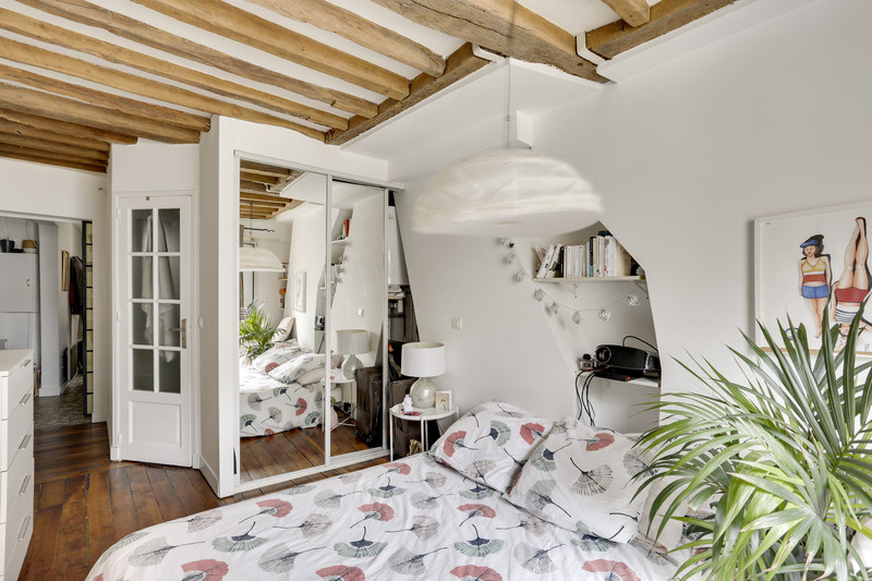 Cet appartement est rempli de cachet grâce aux poutres apparentes parfaitement conservées et à son parquet en lames droites.