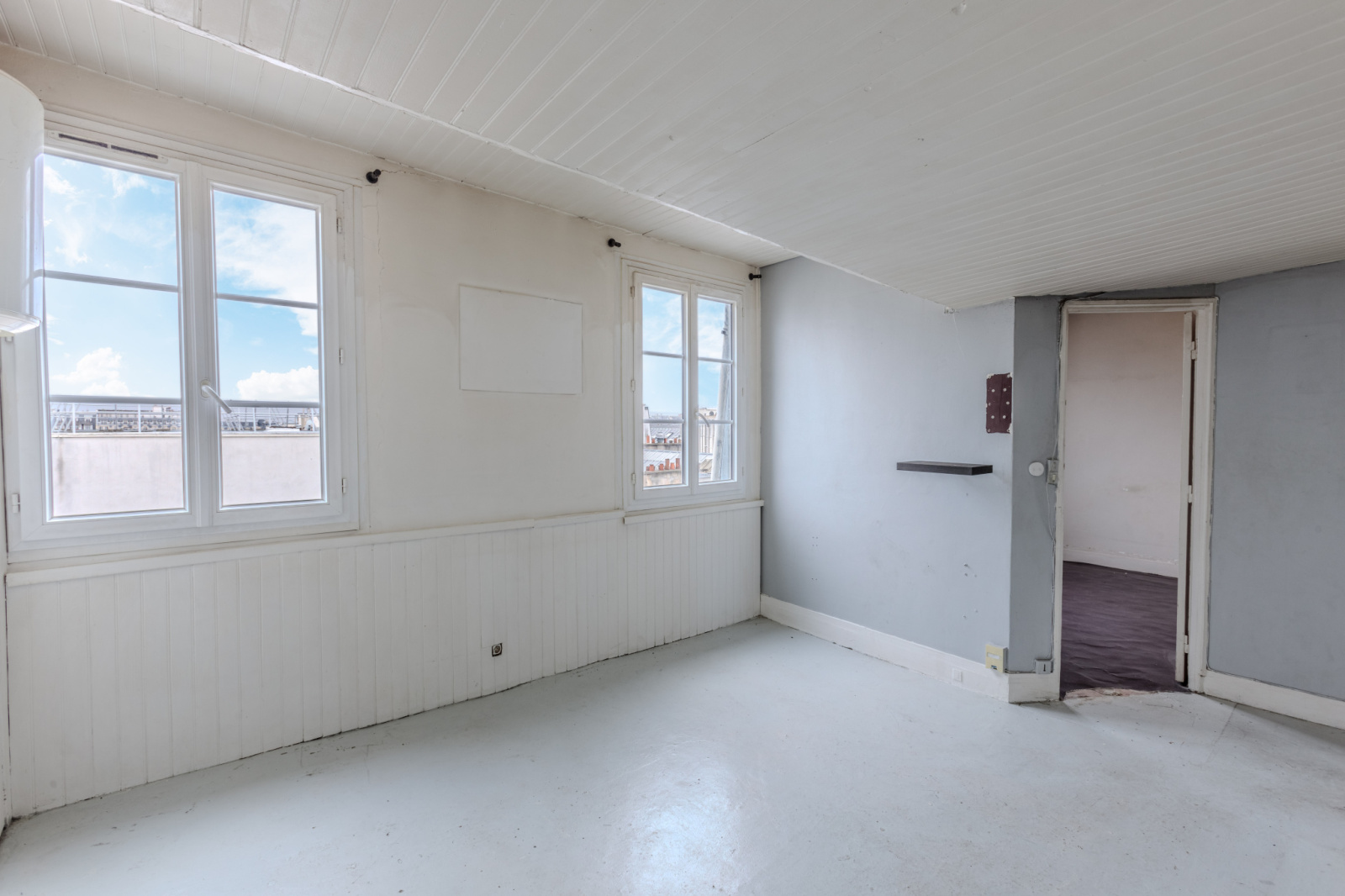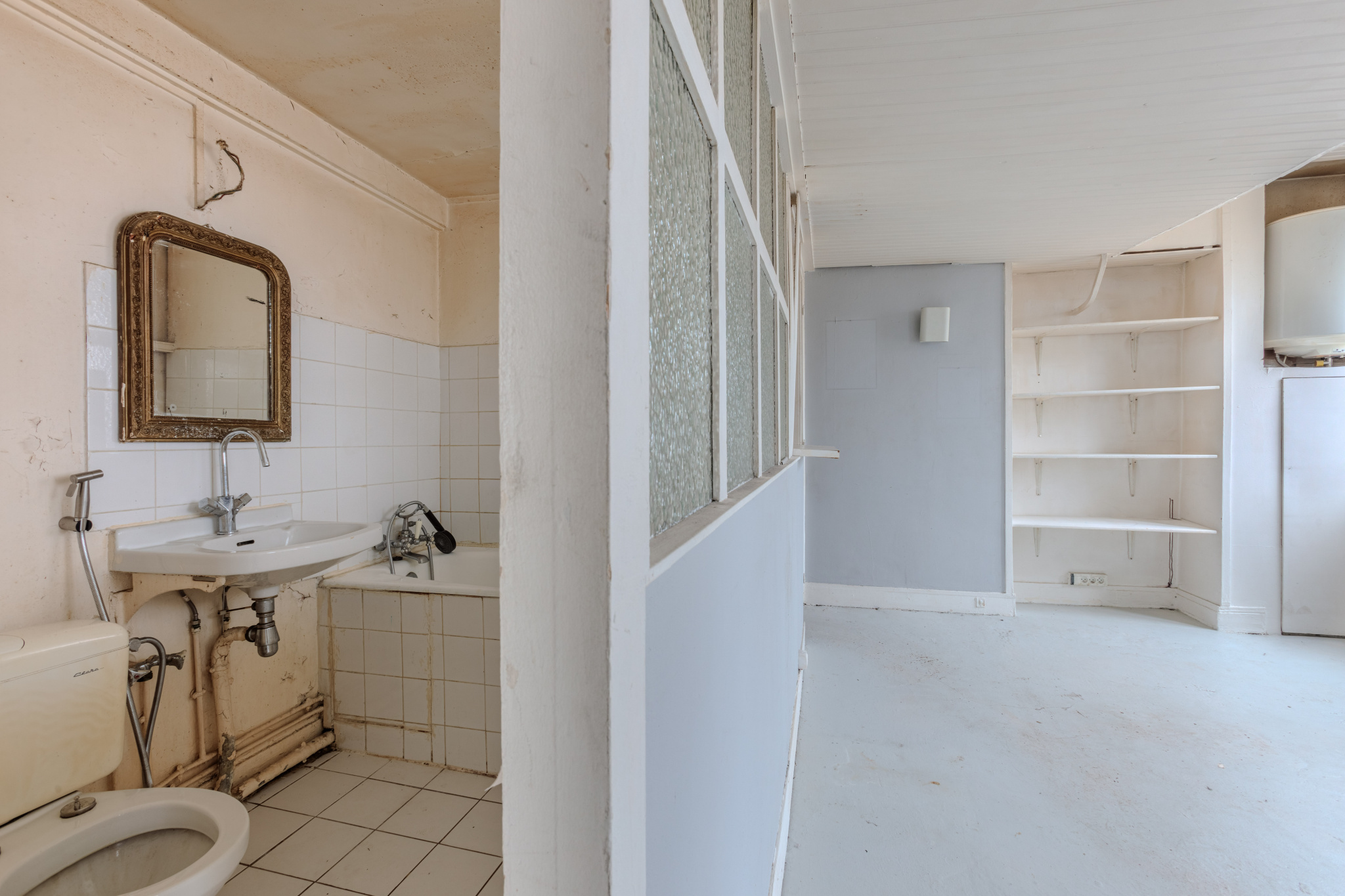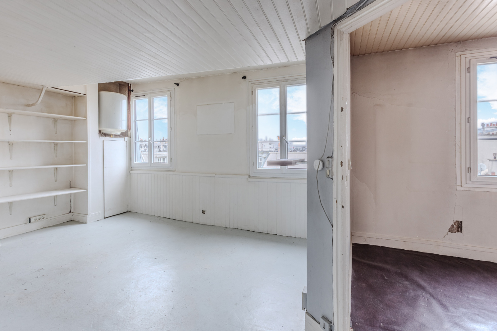 L’appartement, composé deux pièces est à réinventer dans son intégralité.