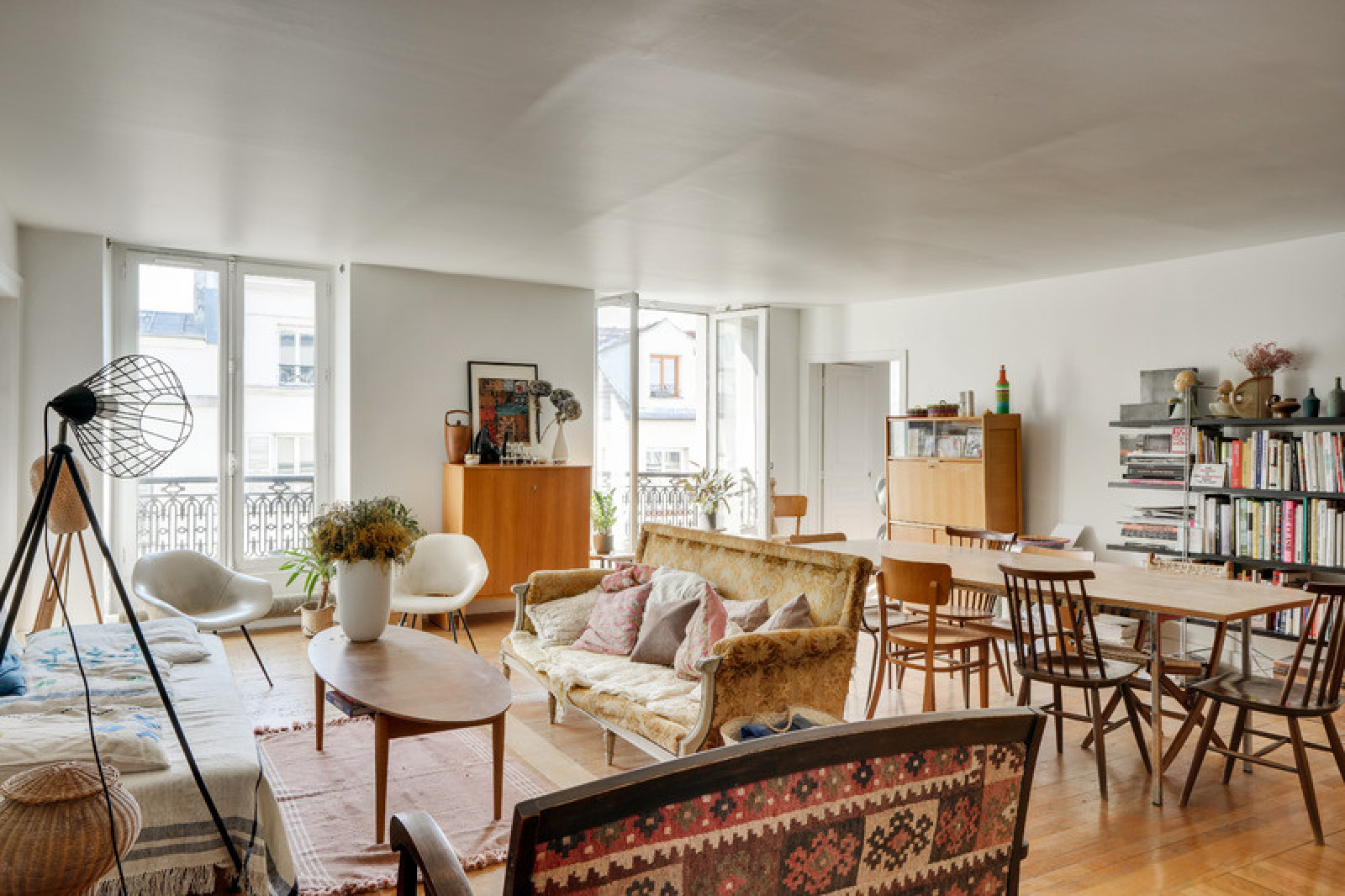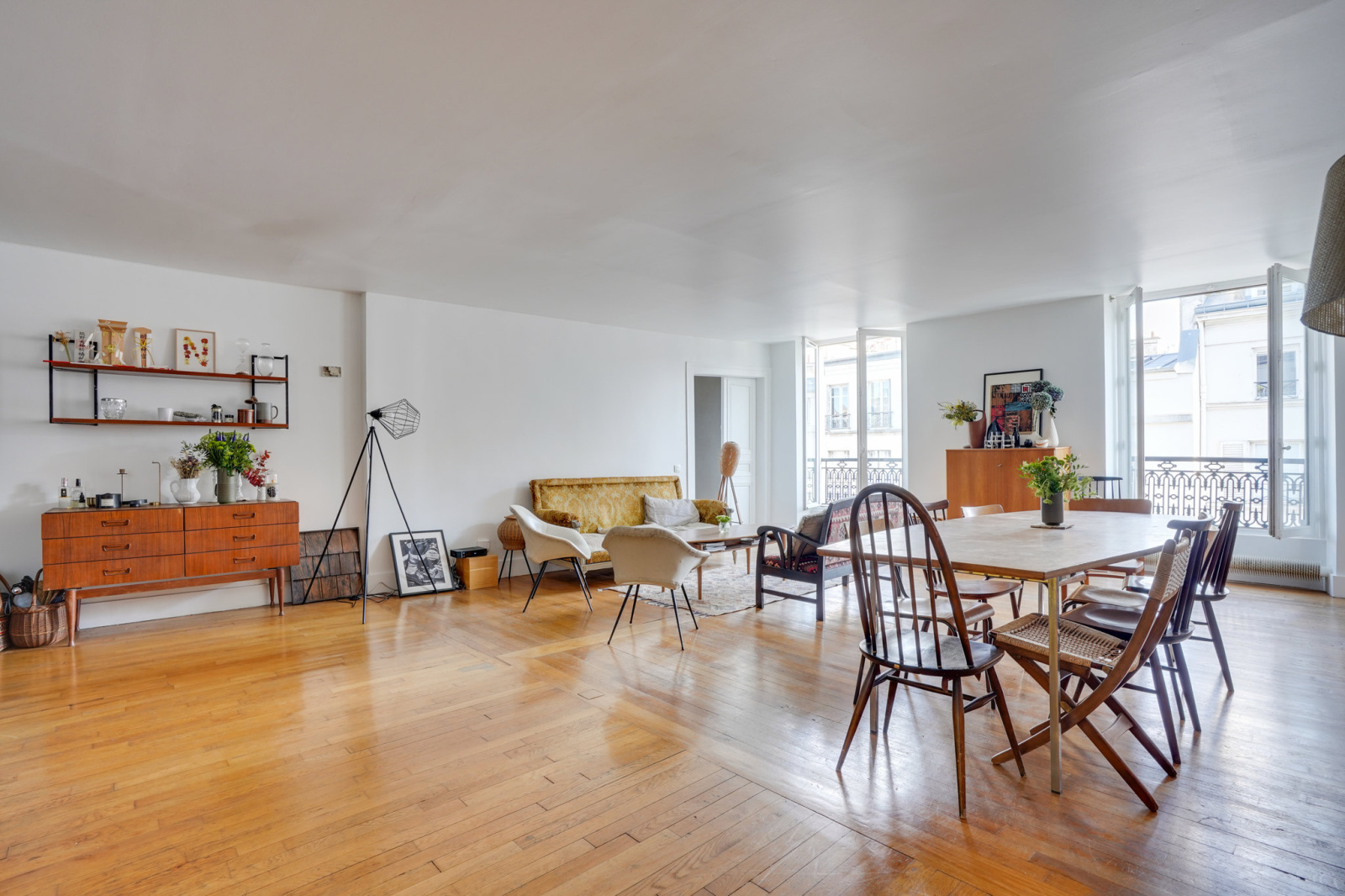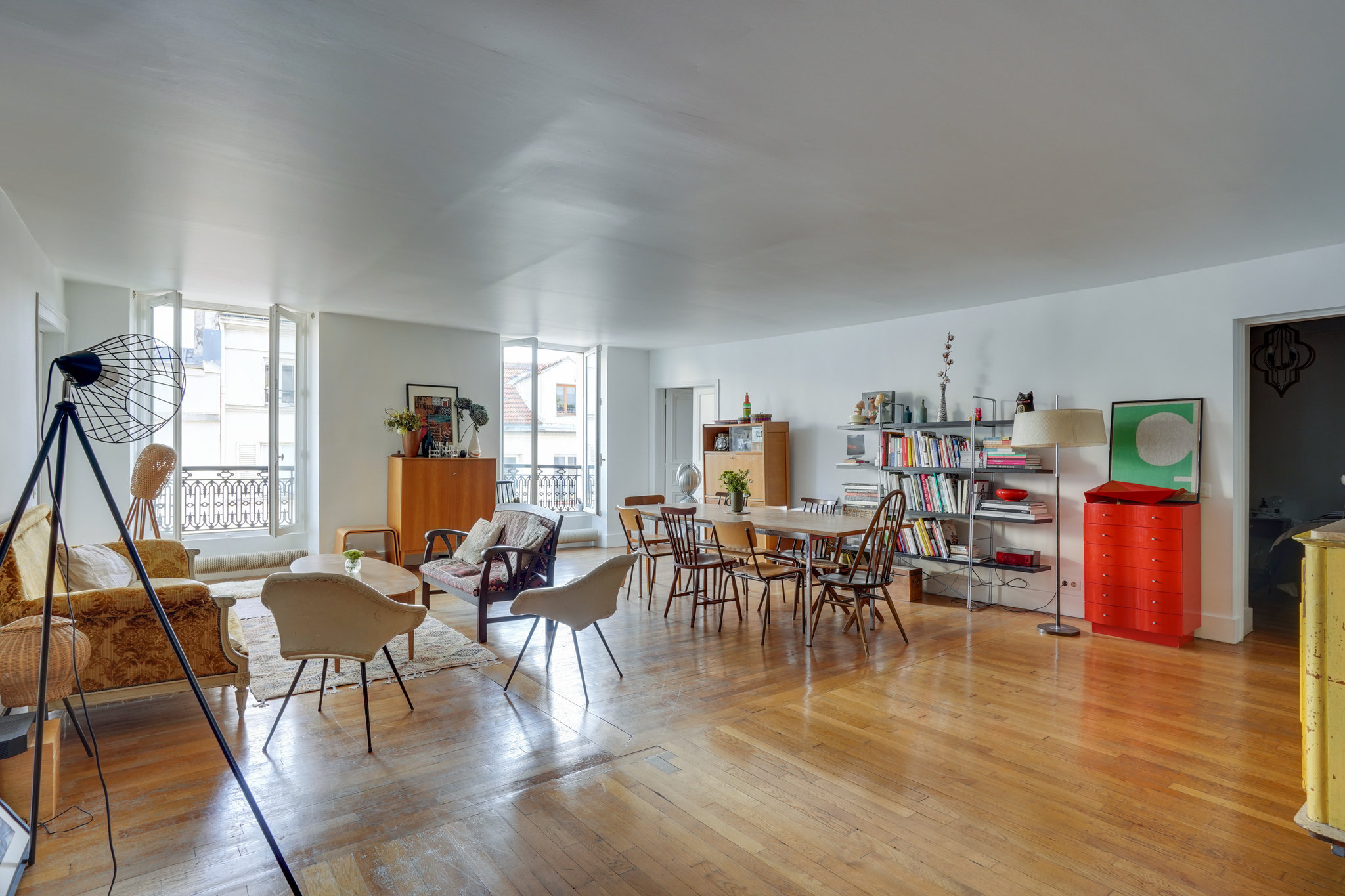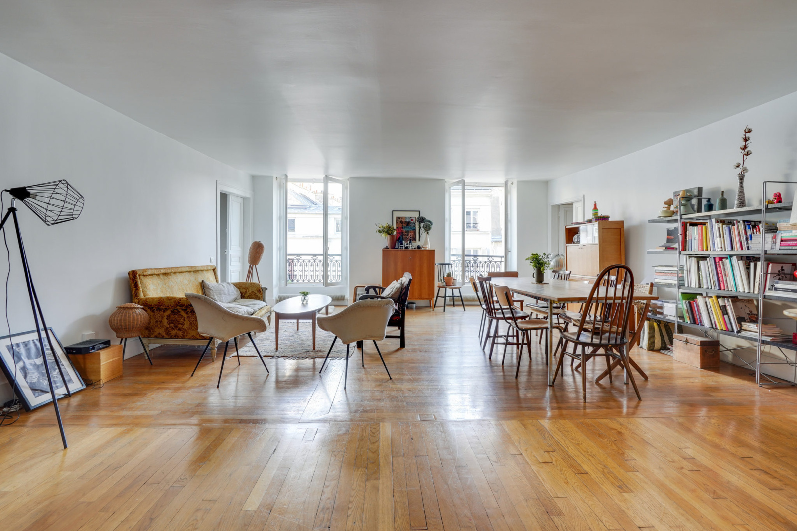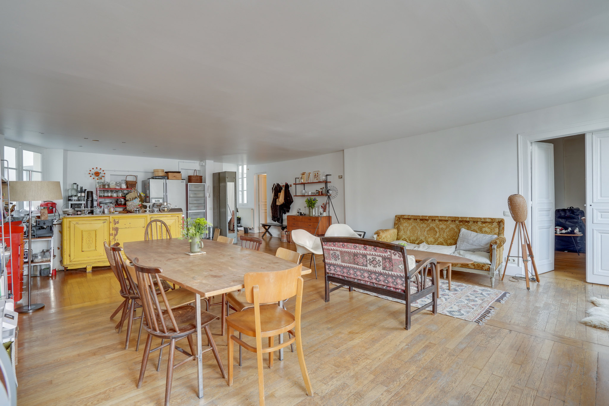 Plan parfait pour cet appartement de 131m² situé au 4ème étage avec un ascenseur. Il propose un volume central de 50m² avec une grande pièce de réception et une cuisine ouverte, 4 chambres dont une suite parentale ( 12, 13, 14 et 17m² ), deux pièces d'eau (salle de bains et salle d'eau), deux wc, une buanderie et un dressing. C'est un appartement rempli de cachet grâce à son parquet d'origine, sa pièce de vie traversante et son plan articulé en étoile. Il est majoritairement exposé à l'Est et la réception est traversante Est/Ouest : il est très lumineux. La copropriété de la fin du 18ème siècle est de très bon standing et très bien entretenue. L'appartement se situe au 4ème étage, l'ascenseur a été voté et payé par les vendeurs et est en cours d'installation.