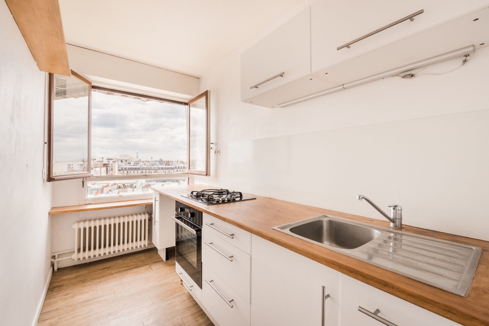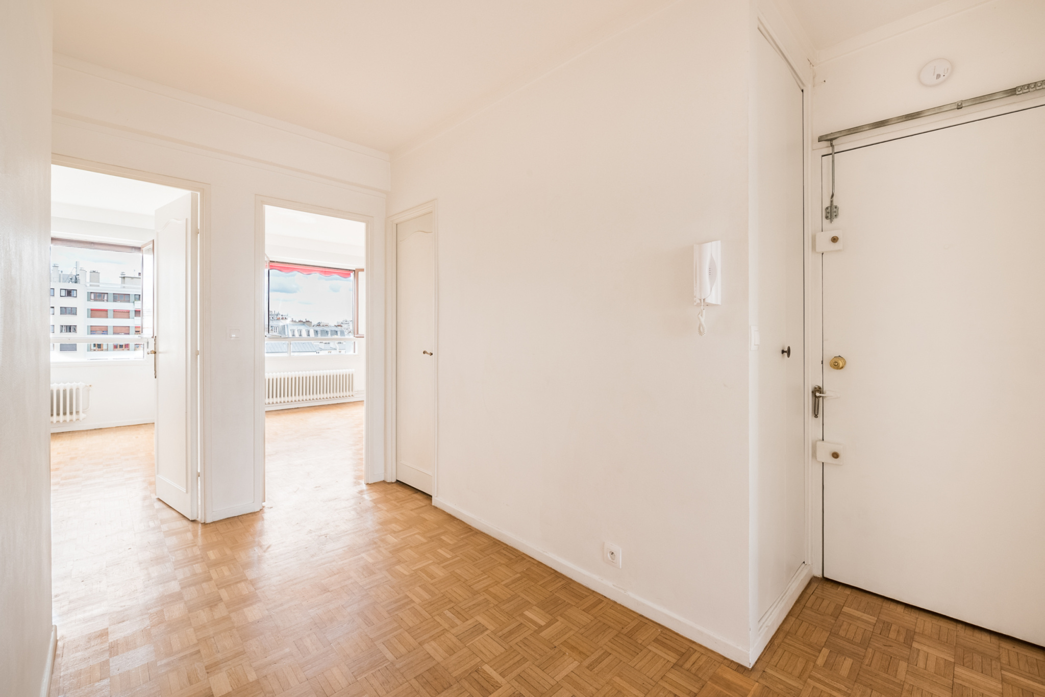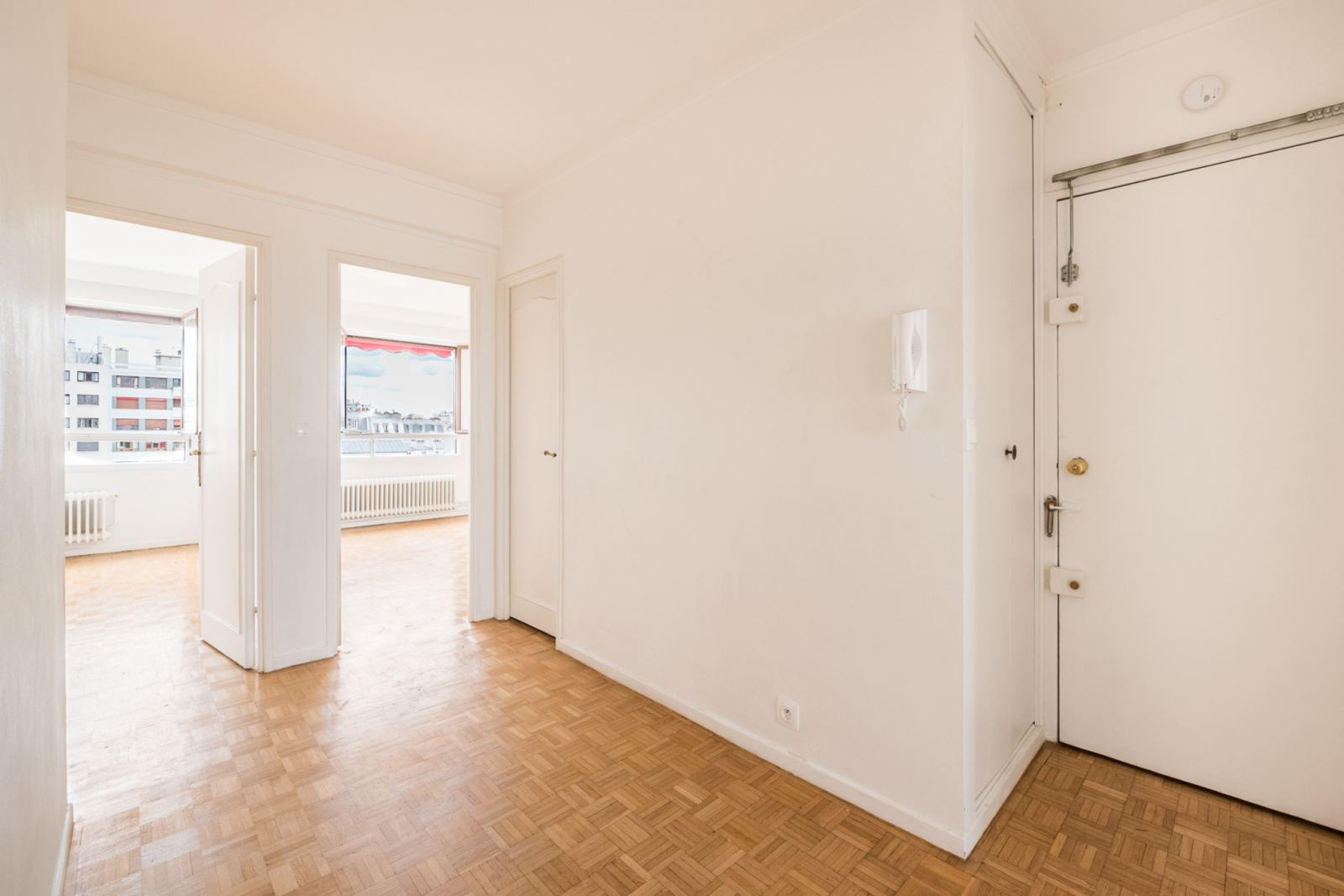 Au 9ème et dernier étage avec ascenseur, un appartement très lumineux de 66.61 m2 avec un balcon composé de 3 pièces : une entrée avec un placard, un séjour avec le balcon, deux chambres dont une avec placard, une salle de bains, un wc, une cuisine. Appartement très agréable disposant de vues sur tout Paris.