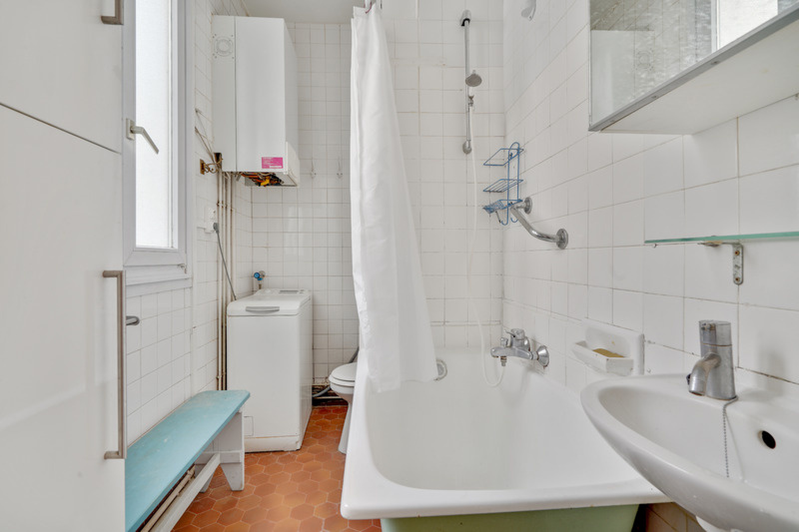 Cette salle de bain avec wc donne sur une courette.