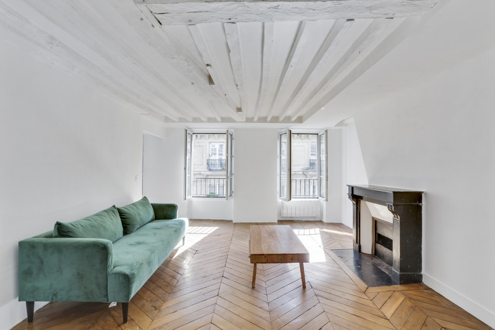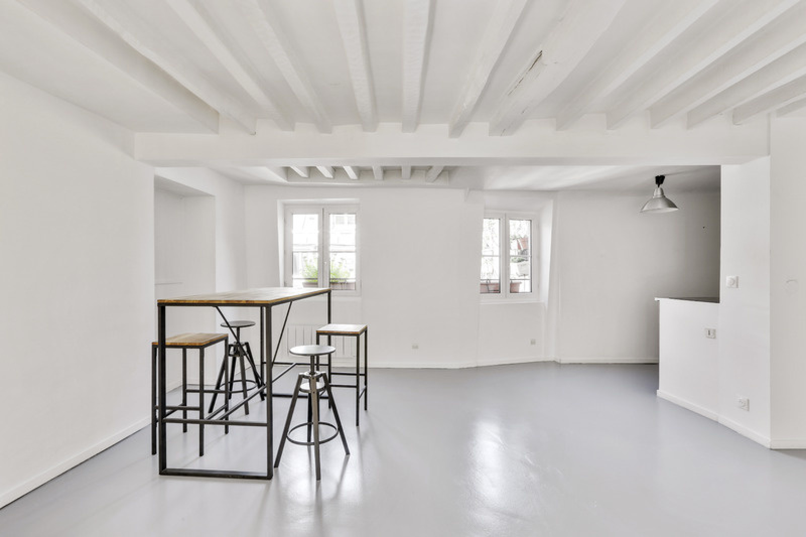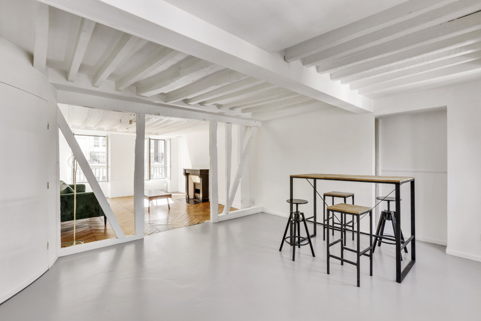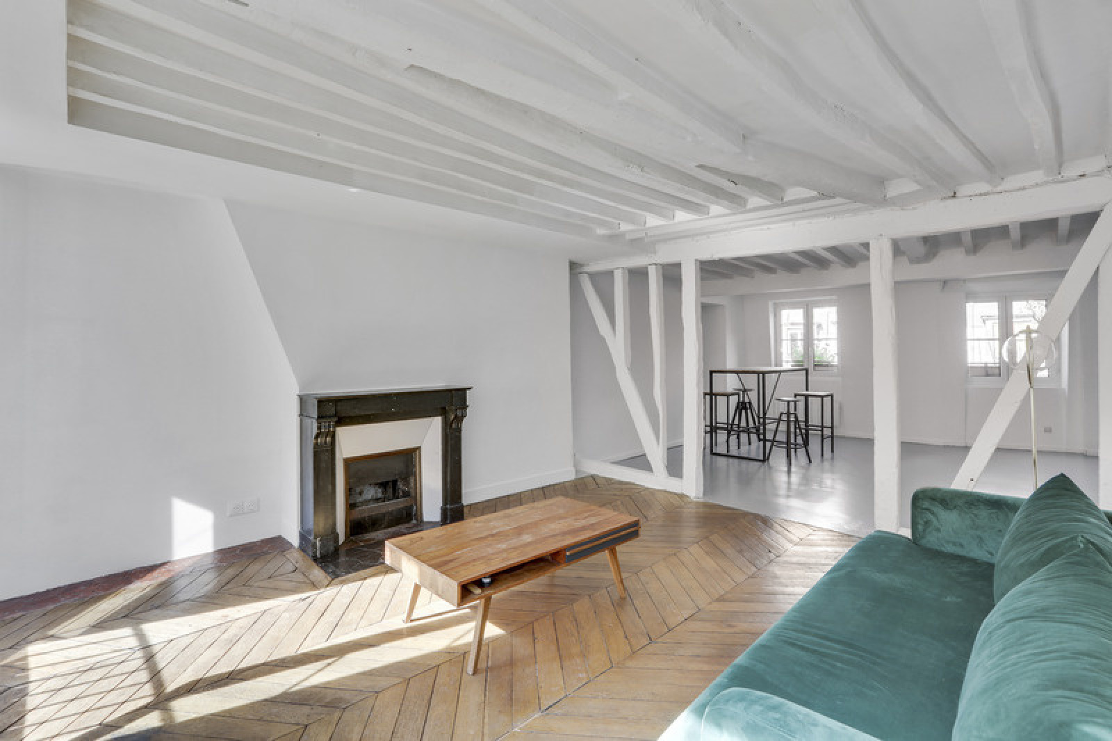 Cet appartement est un vrai mélange du charme de l'ancien grâce au parquet en point de Hongrie et à la cheminée (qui ne fonctionne pas), et du moderne grâce au style industriel voulu par les propriétaires pour la salle à manger et la cuisine.
