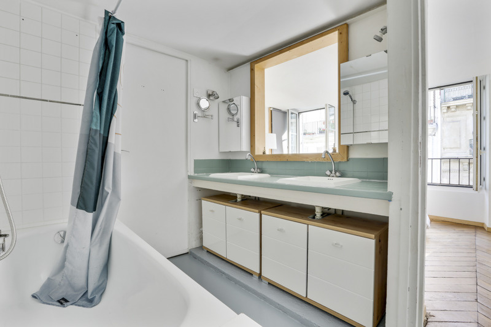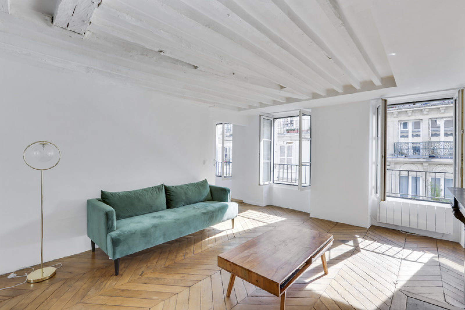 L'appartement dispose de nombreuses fenêtres et est traversant Est/Ouest, ce qui le rend lumineux tout au long de la journée.