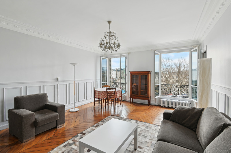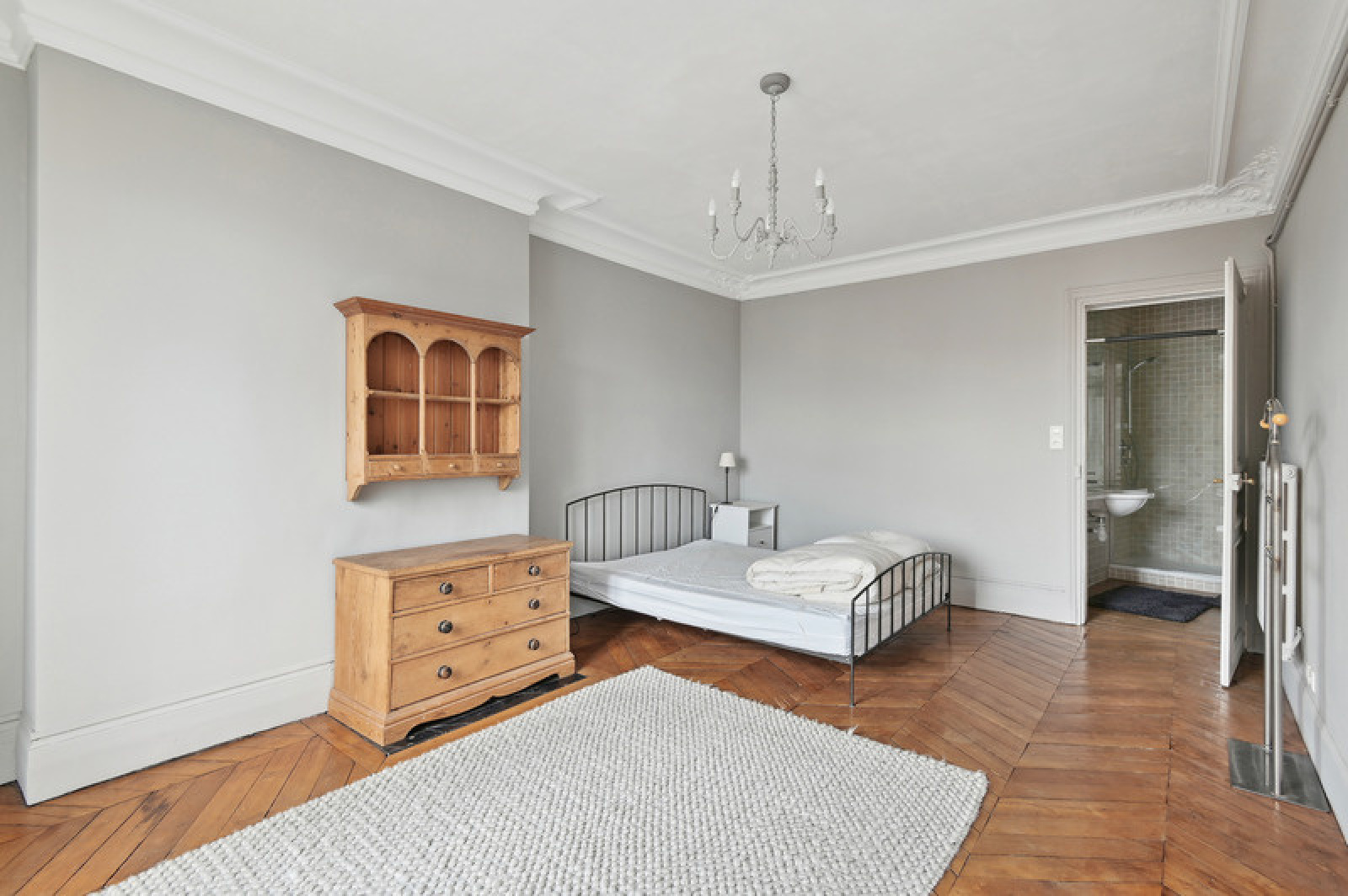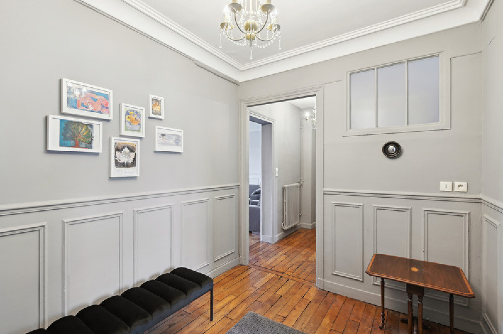 Nous vous présentons dans un immeuble haussmannien, ce grand appartement refait à neuf, traversant (nord/sud) et sans vis-à-vis avec vue dégagée sur Paris.