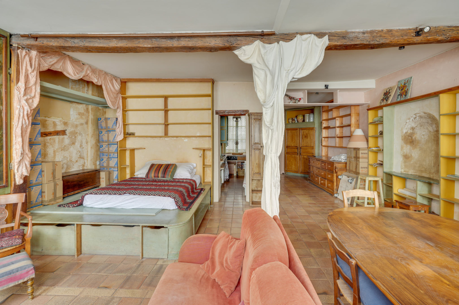 L'espace peut être facilement cloisonner pour devenir un appartement deux pièces avec une chambre fermée ou être transformé en trois pièces/deux chambres avec des travaux plus importants .