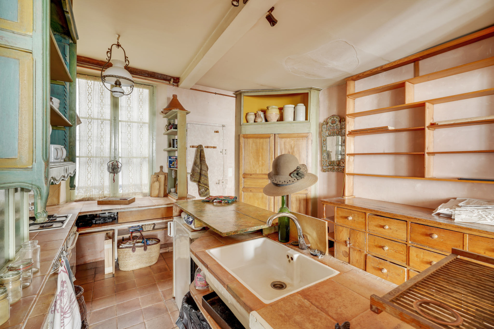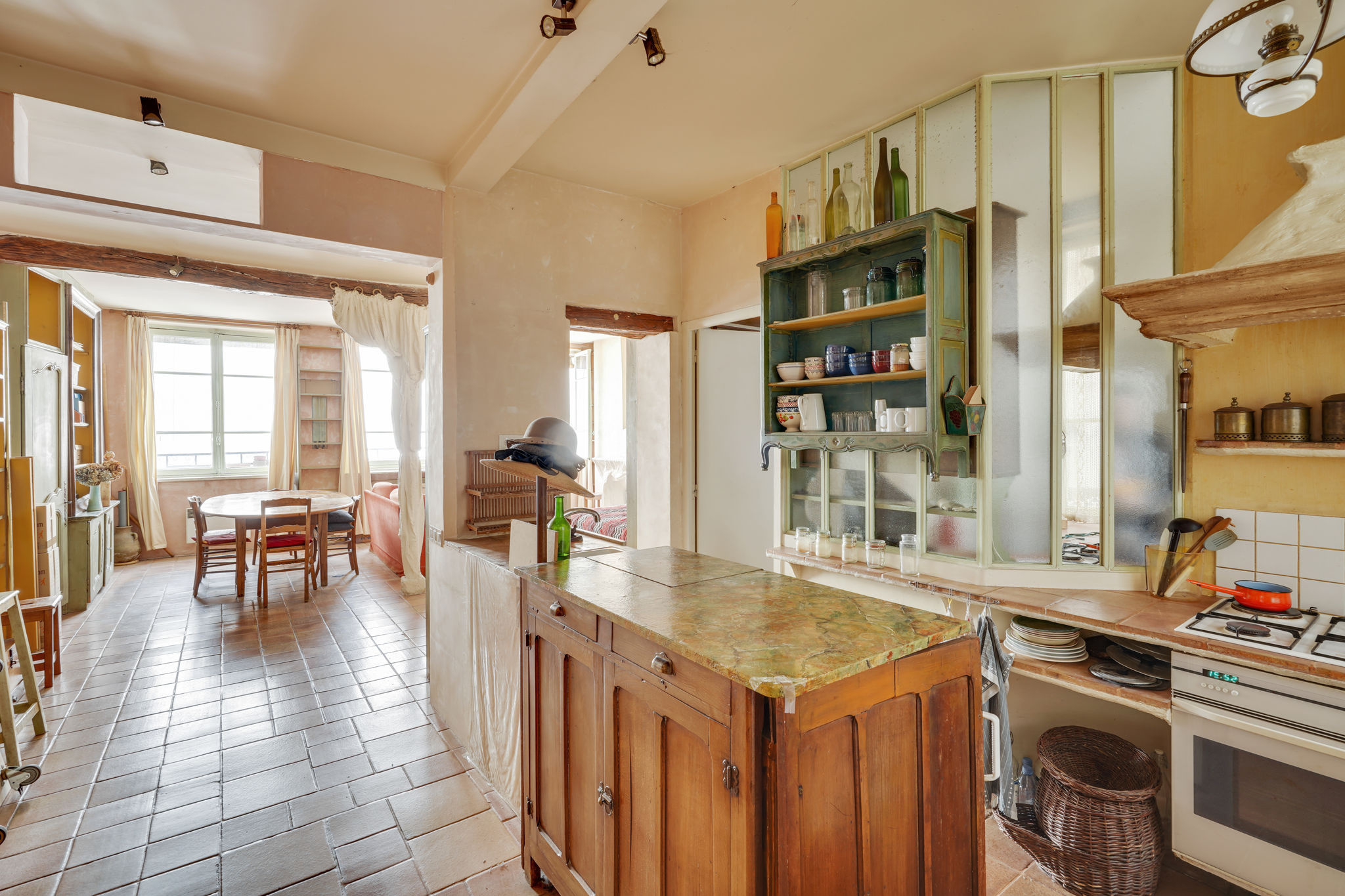 Il possède beaucoup de cachet avec son carrelage en tomette , ses poutres , sa hauteur sous plafond et sa cheminée . Des travaux peuvent être à prévoir .