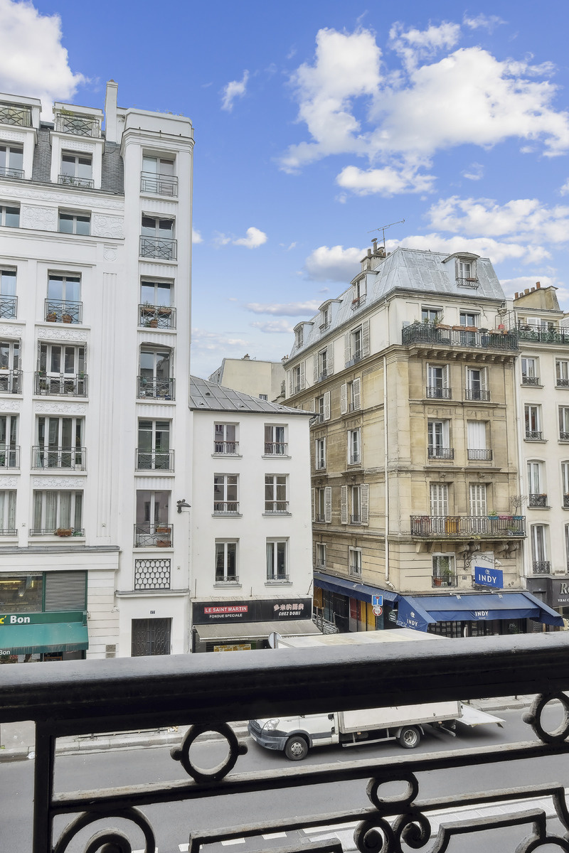 Rue du Faubourg Saint-Martin, au 2ème étage sans ascenseur d'un immeuble de caractère de la fin du 19ème siècle. Nous vous présentons ce très beau 2 pièces de 46,63 m2 à refaire dans son intégralité. Il offre une disposition idéale avec une vaste pièce de vie sur rue et son coin cuisine de presque 24 m2, une chambre au calme sur cour de 10,50 m2, une salle de bains de 6 m2 ainsi que des wc séparés. Cet appartement est très lumineux grâce à ses deux grandes fenêtres à et son exposition à l'Ouest dans la pièce de vie. De nombreux rangements sont présents dans toutes les pièces.