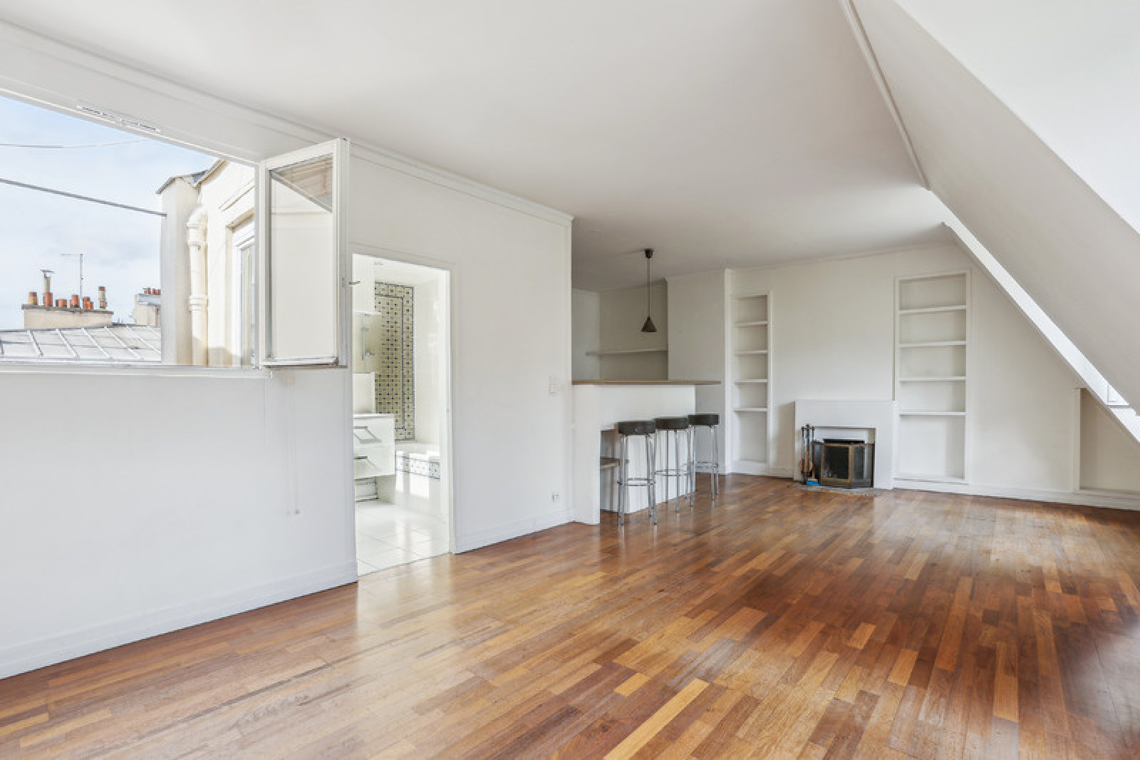 Dans un immeuble de 1820 de bon standing au 4ème et dernier étage sans asc, nous vous présentons cet appartement de 2/3 pièces de 55,02m2 au sol et 47,22m2 selon la loi carrez. Il propose une très vaste pièce de vie de 33m2 carrez et 38m2 au sol avec 3 fenêtres, une cuisine américaine aménagée, une exposition traversante Est/Ouest et le ciel visible de toutes les fenêtres. Une chambre avec des rangements est également présente ainsi qu'une grande salle de bains avec fenêtre et un wc séparé. Son plan est parfait sans aucune perte de place. Son point fort: les nombreuses fenêtres permettent de bénéficier d'une vue large sans vis à vis et la possibilité d'ouvrir coté cour au calme tout en bénéficiant aussi du soleil et du ciel. Il est en bon état. Une cave est présente.