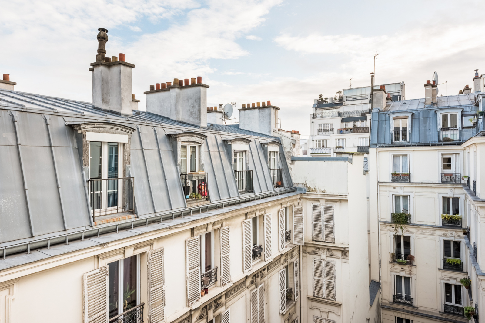 C'est un appartement situé pour les pièces principales à l'est, sur cour et sans vis à vis avec des vues dégagées.