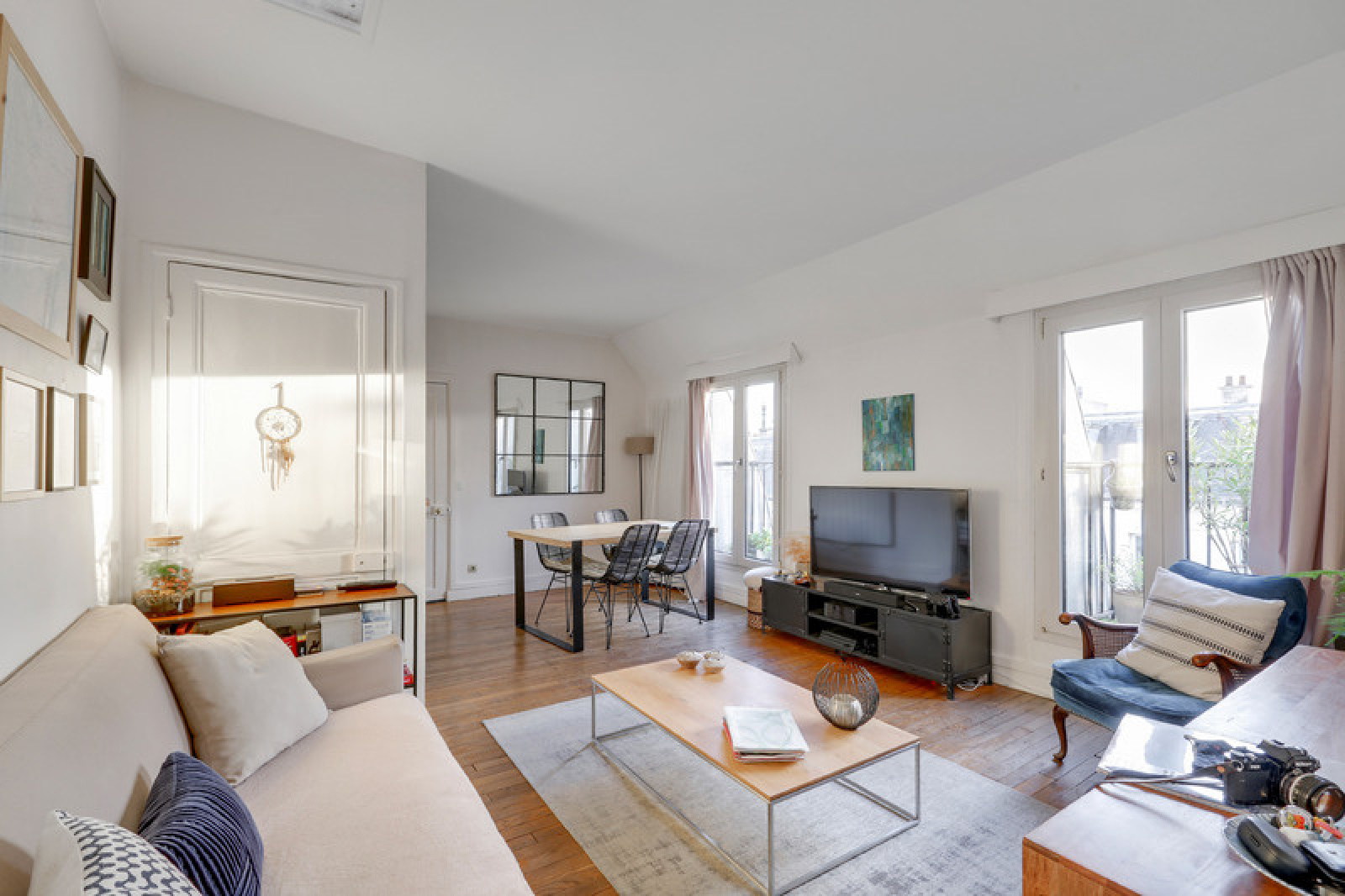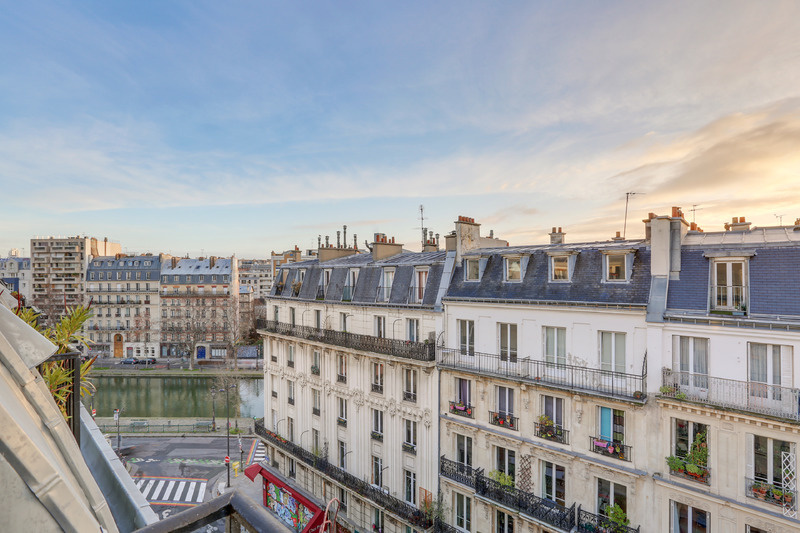Au 6ème et dernier étage avec un ascenseur dans un bel immeuble Pierre de taille nous vous présentons cet appartement coup de coeur composé de trois pièces au plan idéal . Il propose une double réception avec deux portes fenêtres et deux balconnets , une cuisine américiaine et son puit de lumière en toiture , deux chambres avec chacune un balconnet privatif , une salle de douche et un wc séparé ( fenêtre dans chaque pièce ). Il offre une vue très dégagée sur les toits de Paris et le Canal Saint Martin : exposé plein Est et traversant il baigne de lumière Il est en très bon état et possède énormément de cachet grâce à son parquet d'origine. Appartement rare et précieux .