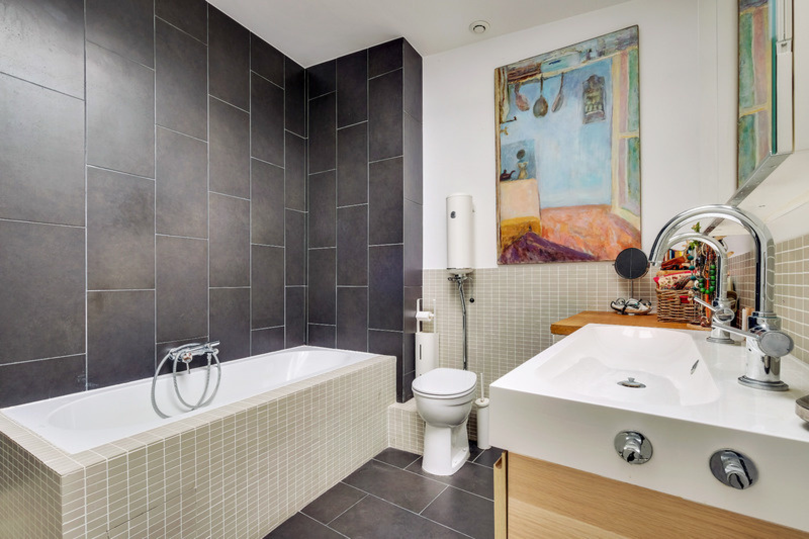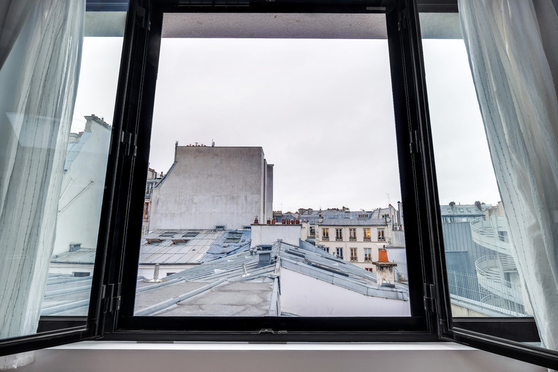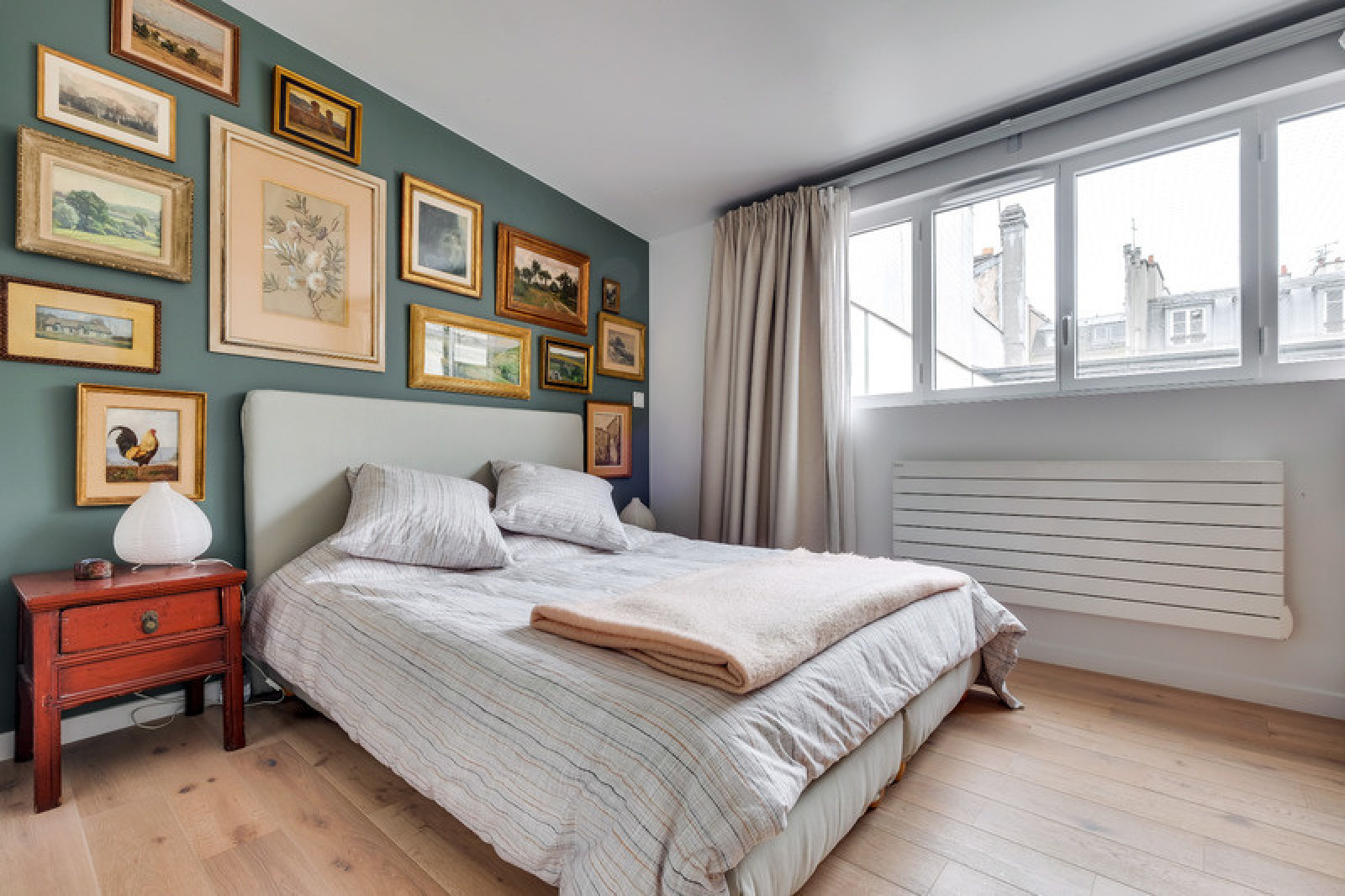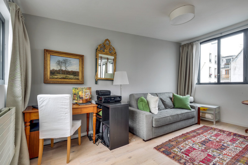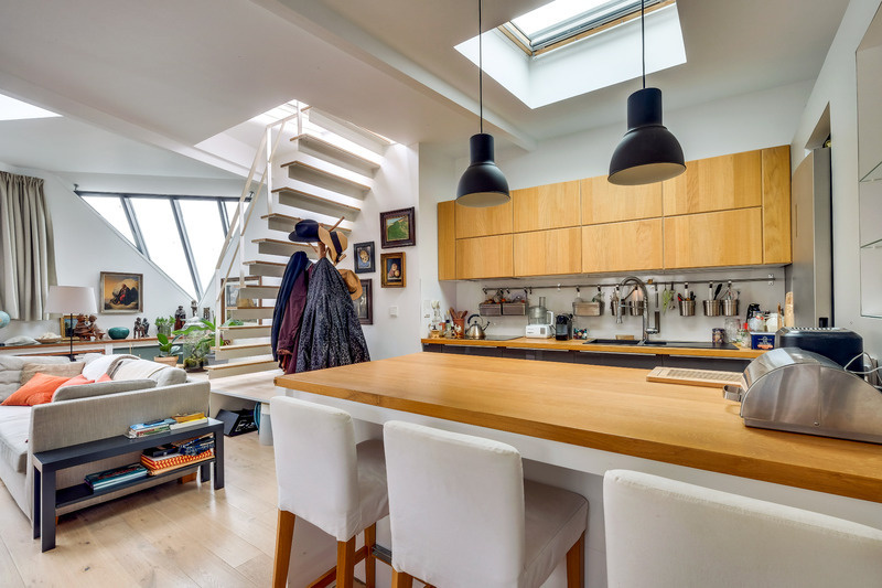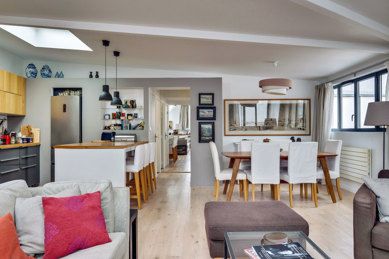 L'accès au bien nécessite de monter un grand escalier intérieur. Il propose une belle réception de 50m² comprenant la cuisine intégrée et équipée , une première chambre et son dressing , une seconde chambre avec cloison amovible (bureau actuellement ) , une salle d'eau avec bains/douche/wc et un second wc séparé. La jouissance du toit est accordée au logement par la copropriété et accessible par un escalier intérieur ( Pas de terrasse officielle déclarée à l'urbanisme ) . L'appartement est traversant et propose trois velux de toit, ses vues sont en grande partie dégagées . Il est en état parfait avec une décoration qualitative et un aménagement sur mesure pensé par un architecte. les normes d'isolation sont parfaites. Il est calme sans aucune nuisance de bruit extérieur ni voisin.Vente longue pour septembre 2022.