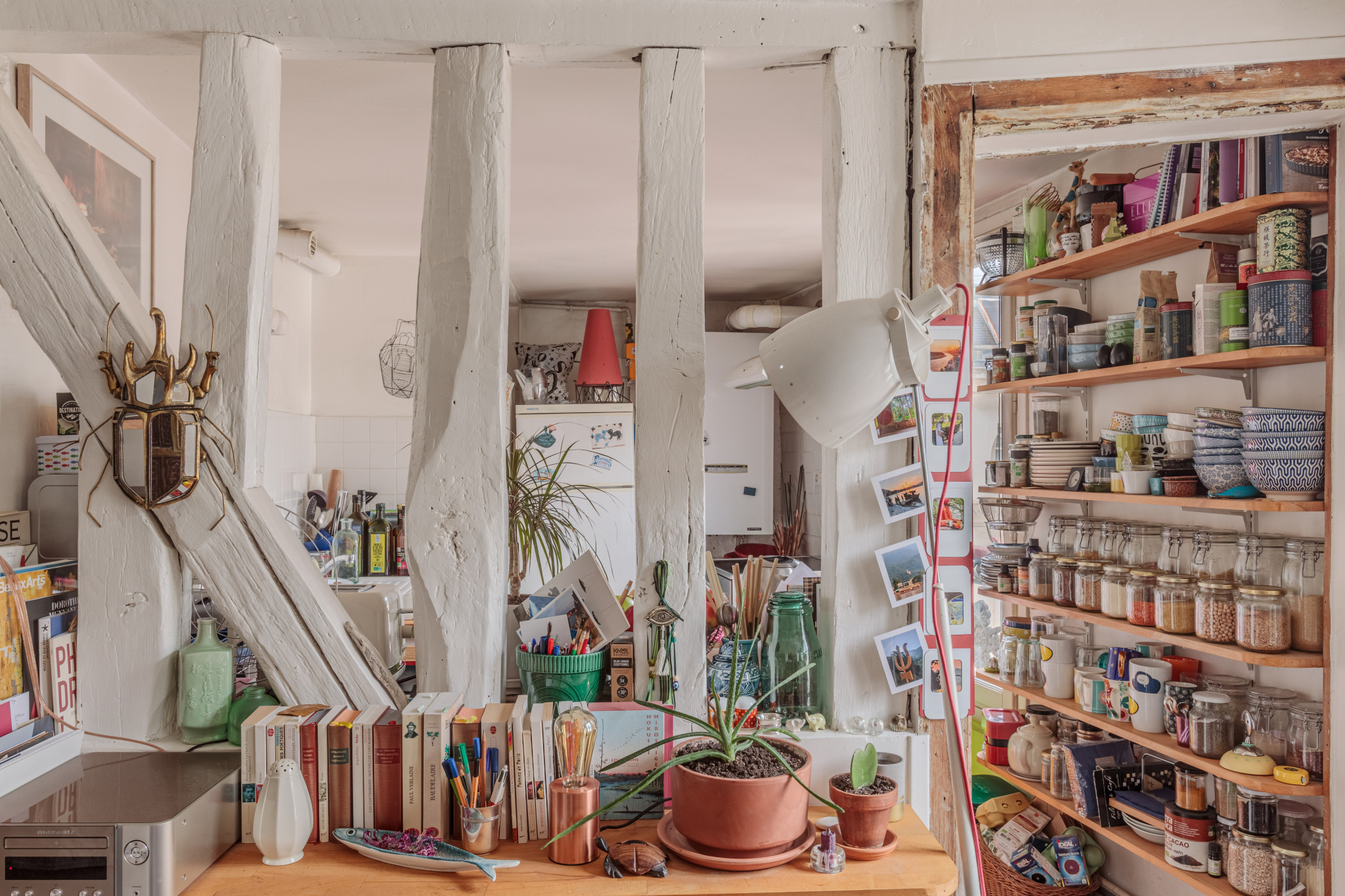 Toutes les pièces sont remplies de charme grâces à leurs caractères anciens : une cheminée prussienne, un colombage parfaitement ententenu et mis en valeur, du parquet ancien, des carellages très bien conservés.