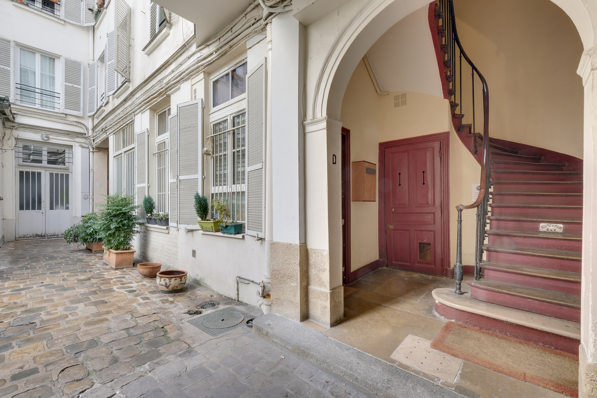 Exposé Ouest coté rue et Est coté cour , il offre une exposition traversante dans l'espace de vie . Il possède de nombreuses fenêtres, la lumière circule très agréablement.