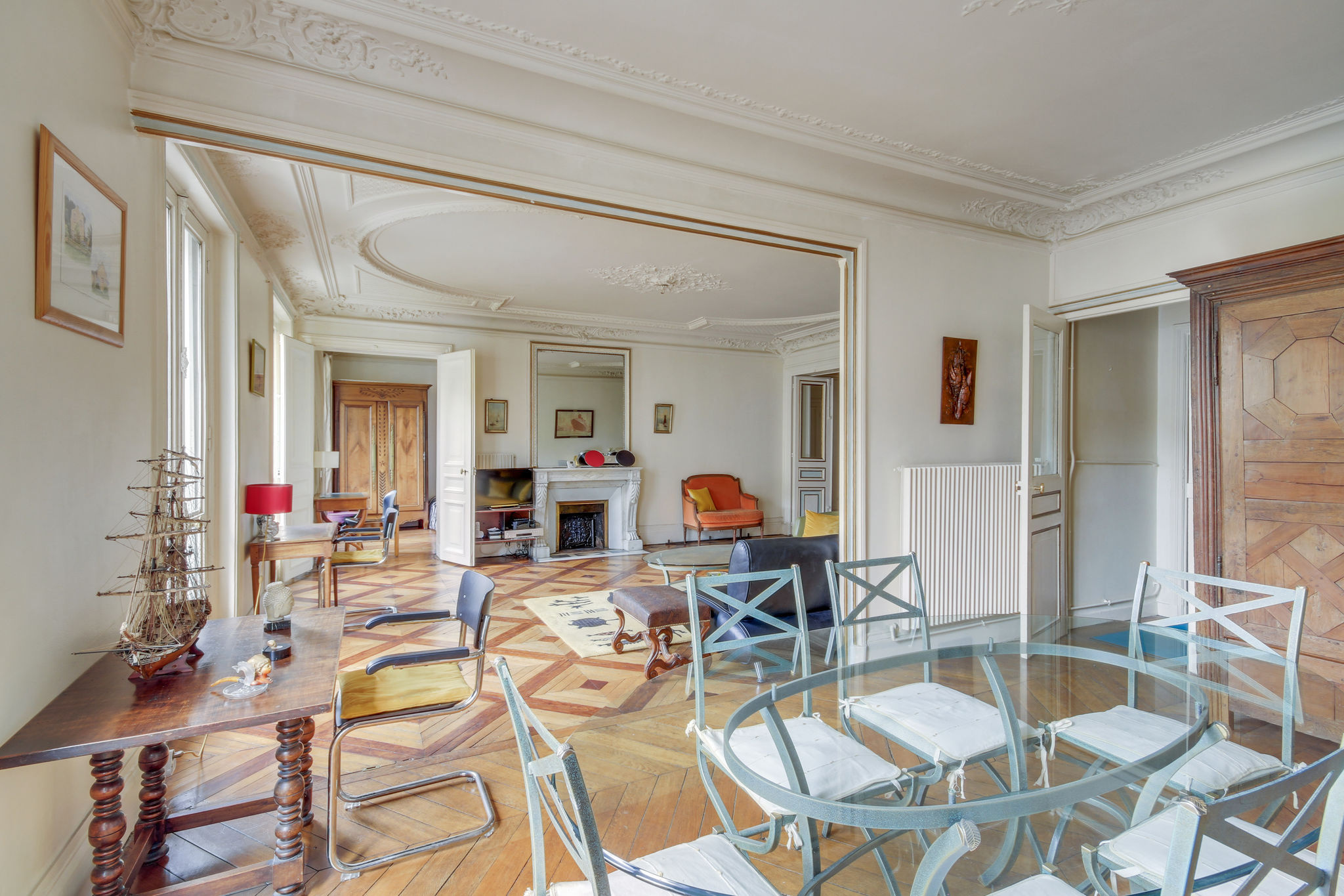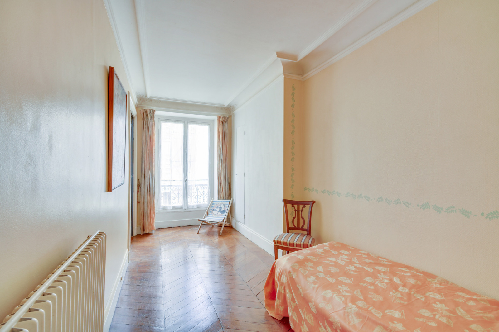 L'appartement possède beaucoup de cachet grâce à ses parquets d'origine en point de Hongrie et de type "Versailles" parfaitement conservés , sa cheminée en marbre d'époque encore fonctionnelle, ses moulures et sa hauteur sous-plafond de 2m80 qui lui donnent un charme intemporel.