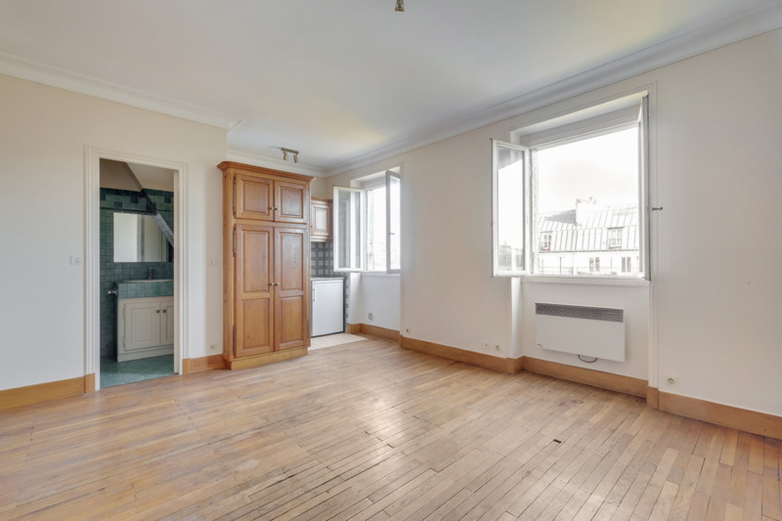 Au 6ème et dernier étage dans un immeuble Pierre de taille de très bon standing. Nous vous présentons ce studio à fort potentiel de 22,15m² loi carrez et son débarras de presque 4m² qui l'accompagne sur le pallier. Il offre une belle pièce de vie de 19m² avec cuisine ouverte, ainsi qu'une salle d'eau et son wc. Il possède beaucoup de cachet grâce à son parquet d'origine, son volume, sa belle hauteur sous plafond et ses deux grandes fenêtres avec vue dégagée et aucun vis-à-vis . Exposé à l 'Est il est particulièrement lumineux. Dans un quartier vivant et très attractif du 14ème arrondissement, quartier Raspail, proche des commodités et des transports en commun (Gare Montparnasse et lignes de métro 4, 6, 12 et 13), sa localisation est idéale. Possibilité de faire une buanderie ou de vrais wc dans le débarras sur le palier (actuellement sanybroyeur dans l'appartement et wc commun sur le pallier).