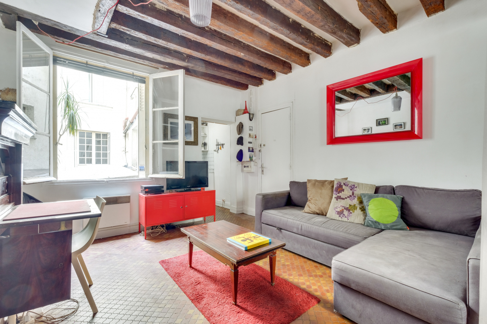 Rue au Maire , en plein centre de Paris , à l'entrée du Marais , dans un quartier animé et vivant nous vous présentons ce studio de 21,34m2 situé sur cour très calme . Il est au 2ème étage d'une petite copropriété simple, bien entretenue et bien gérée . Il se compose d'une grande pièce de vie avec une belle hauteur sous plafond de 19m^2 , des poutres et de la tomette , un espace cuisine ouvert avec kitchenette et une salle de douche avec son wc. Il possède le cachet de l'ancien . Il se situe sur une petite cour ntérieure agréable : il est très calme . Des travaux seront à prévoir .