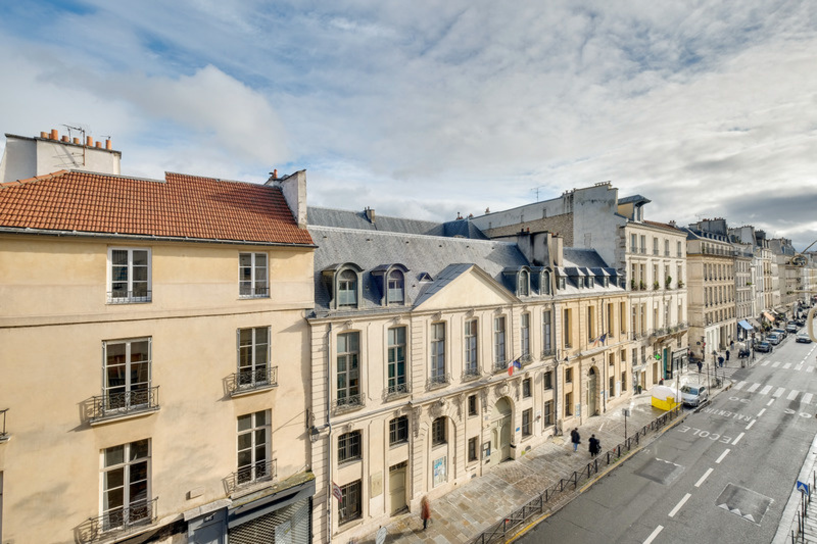 Rue de Turenne, dans un immeuble du 17ème siècle de très bon standing au 4ème étage sans ascenseur : appartement très cosy composé de 2 pièces de 41m² . Il propose une entrée , une belle pièce de vie, un espace cuisine ouvert sur la pièce de vie , une chambre avec salle de bain et wc attenants , un bureau séparé . Le plan est très optimisé et très modulable . Il faudra prévoir des travaux mais le bien est empli de cachet grâce à sa cheminée très originale signée par un sculpteur renommé et son parquet massif . Son atout fort est sa luminosité : il est traversant , très bien exposé et ses vues sont dégagées des deux cotés .